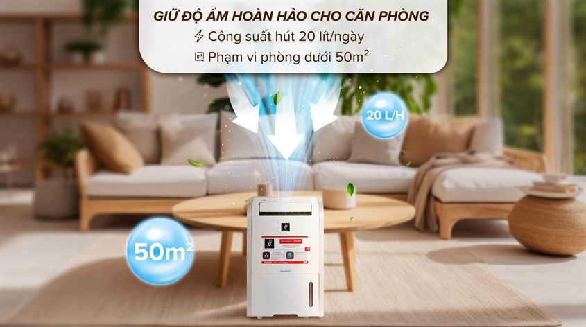 Máy hút ẩm Sharp DW-D20A-W hút ẩm hiệu quả với công suất 410W