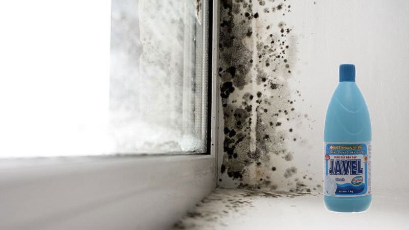 + Sử dụng nước tẩy Javel : Nước tẩy Javel là loại dung dịch phổ biến hiện nay bạn có thể dễ dàng tìm mua. Đối với cách làm sạch tường nhà bị mốc bằng thuốc tẩy bạn cần đeo găng tay, khẩu trang để bảo vệ da của bạn khỏi tiếp xúc trực tiếp vào thuốc tẩy. Hòa javel vào nước sau đó dùng cây lăn nhúng vào hỗn hợp thuốc tẩy sau đó lăn lên tường bị nấm mốc. Sau đó dùng khăn chà nhẹ lên khu vực bị mốc cho đến khi vết bẩn biến mất hoàn toàn. Dùng quạt điện hoặc mở các cánh cửa để giảm bớt mùi hắc của thuốc tẩy và cho tường mau khô.