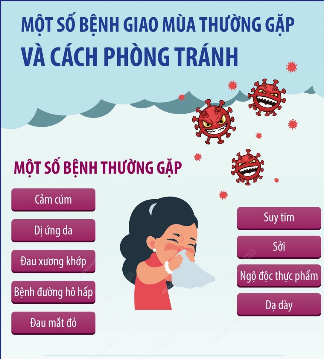 - Thời điểm giao mùa thường khiến cơ thể dễ mắc các bệnh phổ biến do thay đổi thời tiết đột ngột như :